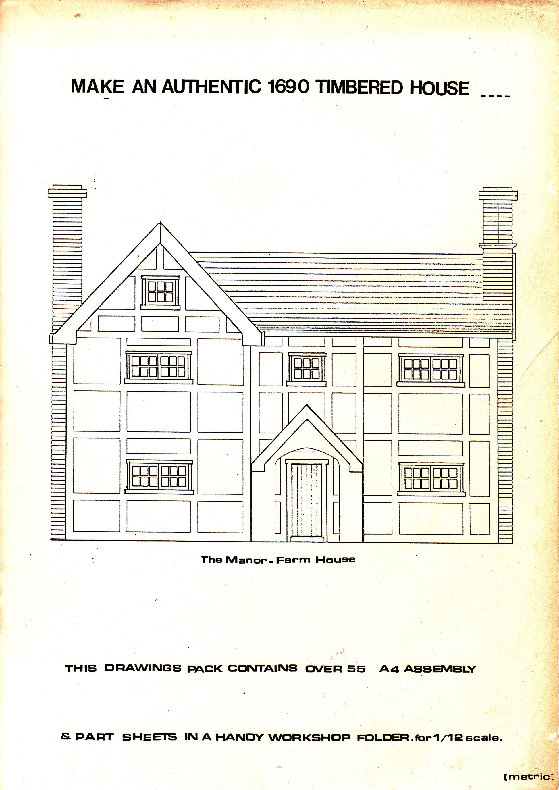 1690 TIMBERED HOUSE, This is an exceptional set of drawings for the professional model maker. Contains 55 A4 drawings 1/12th scale all in millimetres. This is a real challenge for the doll house builder. Designed by Lowrie Green. Detailed instructions and helpful notes throughout.