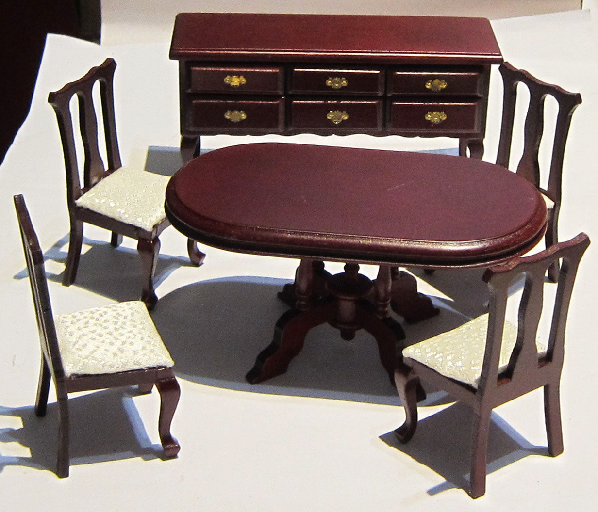 6 Piece mahogany dining room set comprising table, 4 chairs plus a sideboard with six opening drawers.