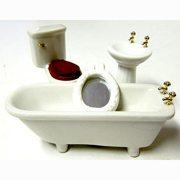 Bathroom 4 pcs Walnut seat and lid, gold plated handle and taps.