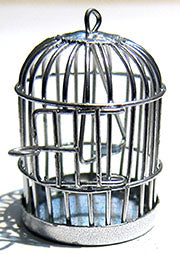Bird Cage, with opening door, 4 cm h. with perch. white