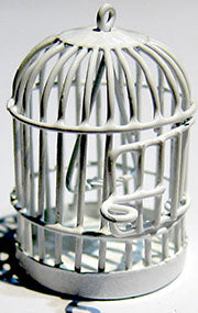 Bird Cage White. 40 mm high. with PEARCH AND hanging hook