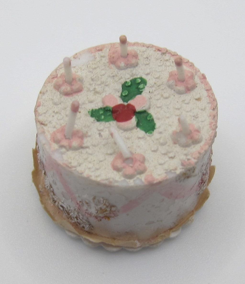 White & pink birthday cake with candles. 2,4 cm Diameter