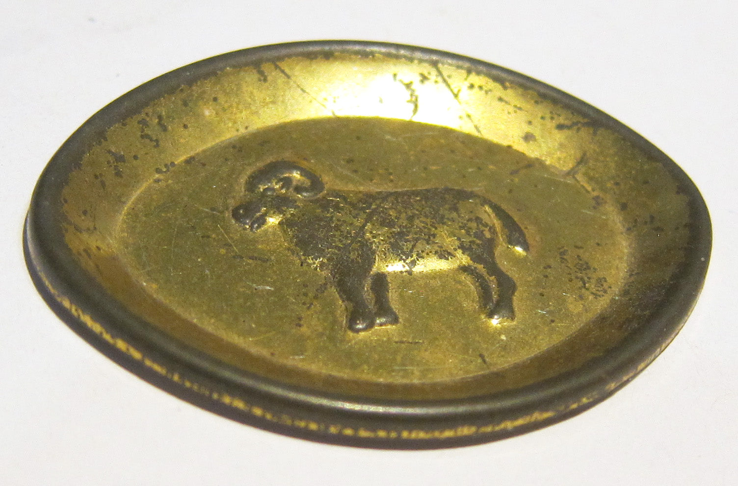 Vintage brass serving dish with a ram in the centre, 4cm l x 3cm w
