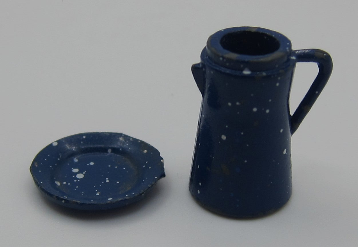 Dark blue jug & plate with white dots. 2,3 cm Height- jug