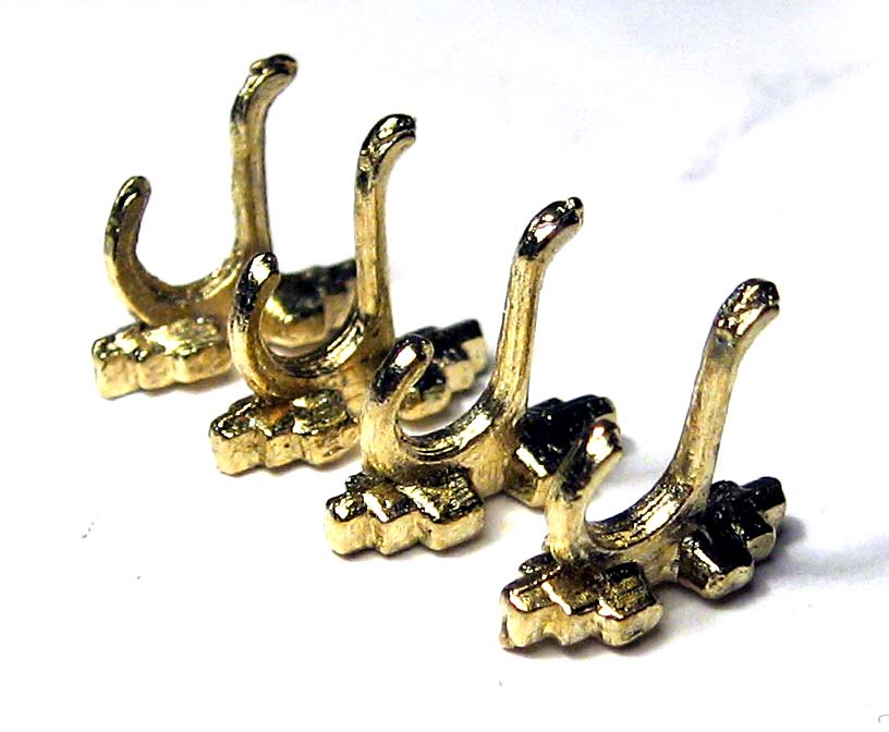 Coat Hooks, cast metal, brass plated, 4 pcs.