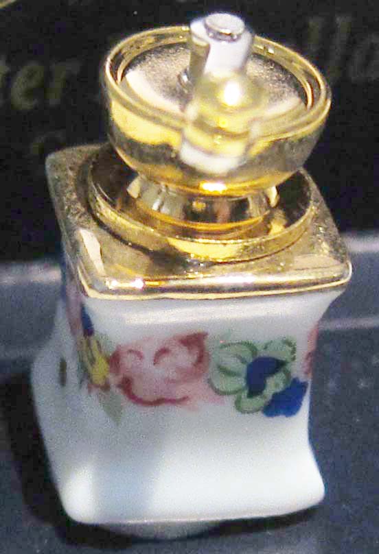 Coffee grinder by Reutter best porcelain. Gold plated parts. Handle turns, 30 mm high
