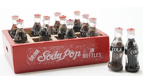 Cola Bottles in Crate, wood crate, 12 plastic bottles, 55 mm x 40 mm.