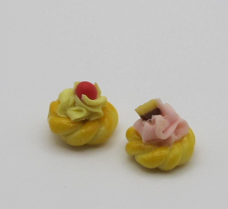 Cream cookies topped with whipped frosting and candy toppings