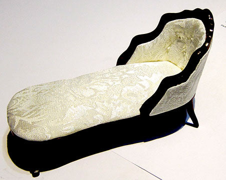 Fainting Couch, carved back, white upholstery, 14 cm l, Queen Anne legs