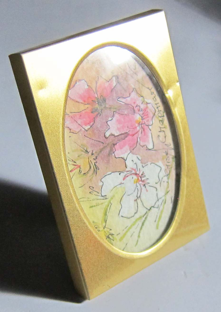 Floral Picture in a gold metal frame - Frame is slightly damaged