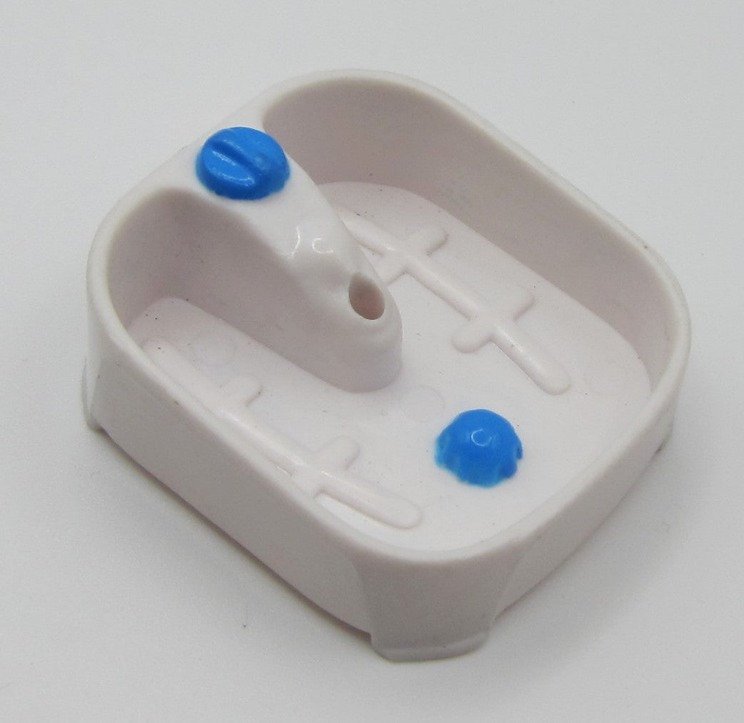 A plastic, white & blue foot massage machine.