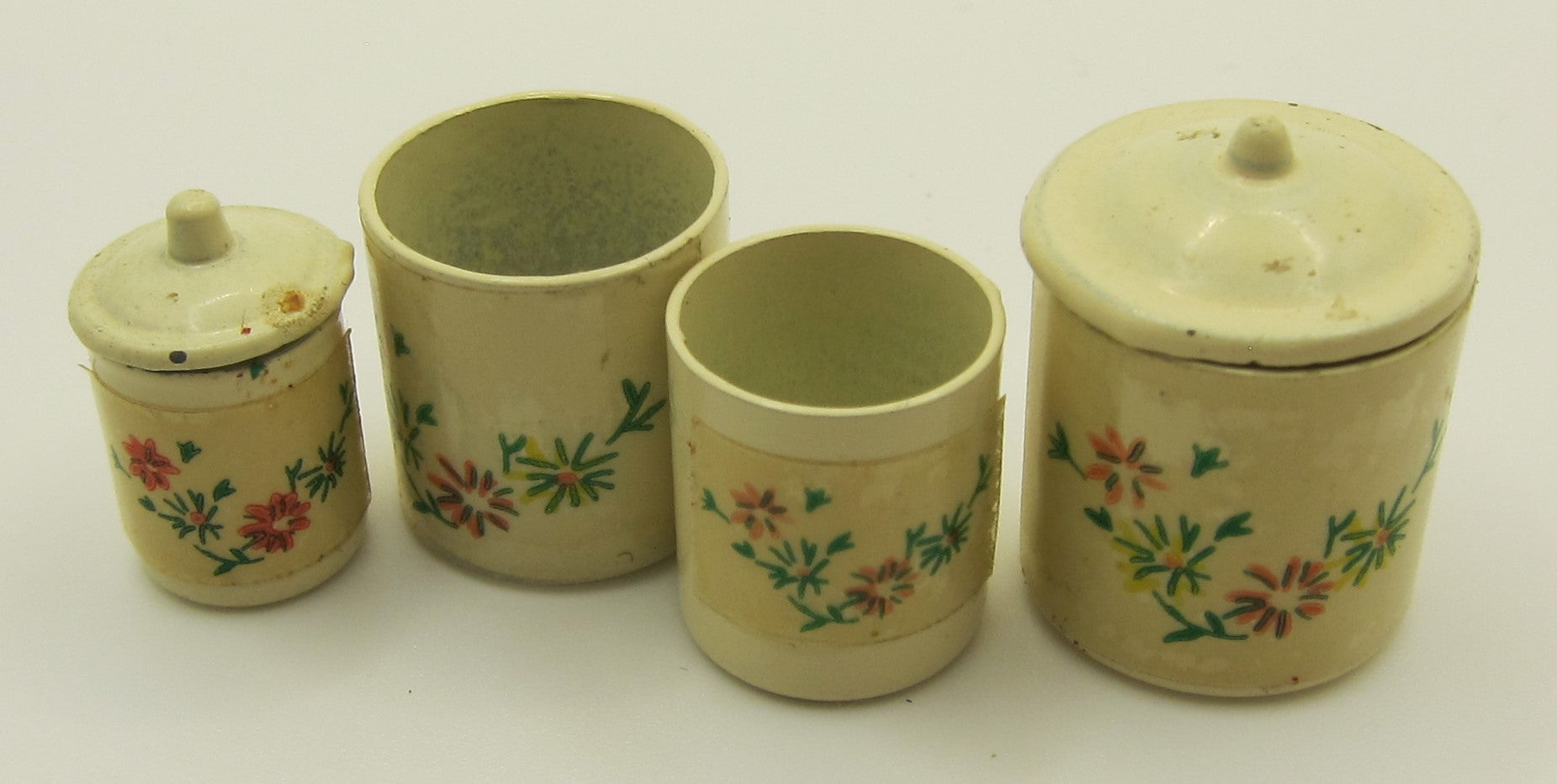 Four vintage canisters ,two with lids ,the other two excluding lids