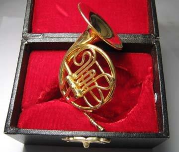 Wooden french horn in a black imitation leatherette case lined in red velvet