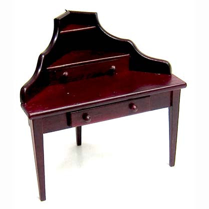 Corner Desk, wood, with two opening drawers, 105 mm w, 65 mm d, Mahogany.