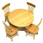 Table and Four Chairs, Oak, Table diameter 9,5 cm.