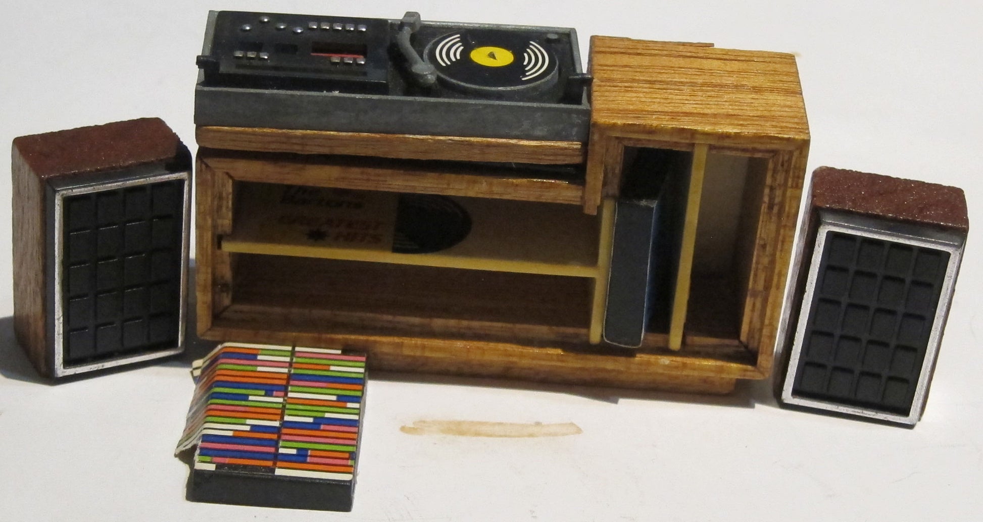 Music Center Comprising Basic Wood Cabinet, Record Player, 2 X Speakers, And The Barton's Record Album.