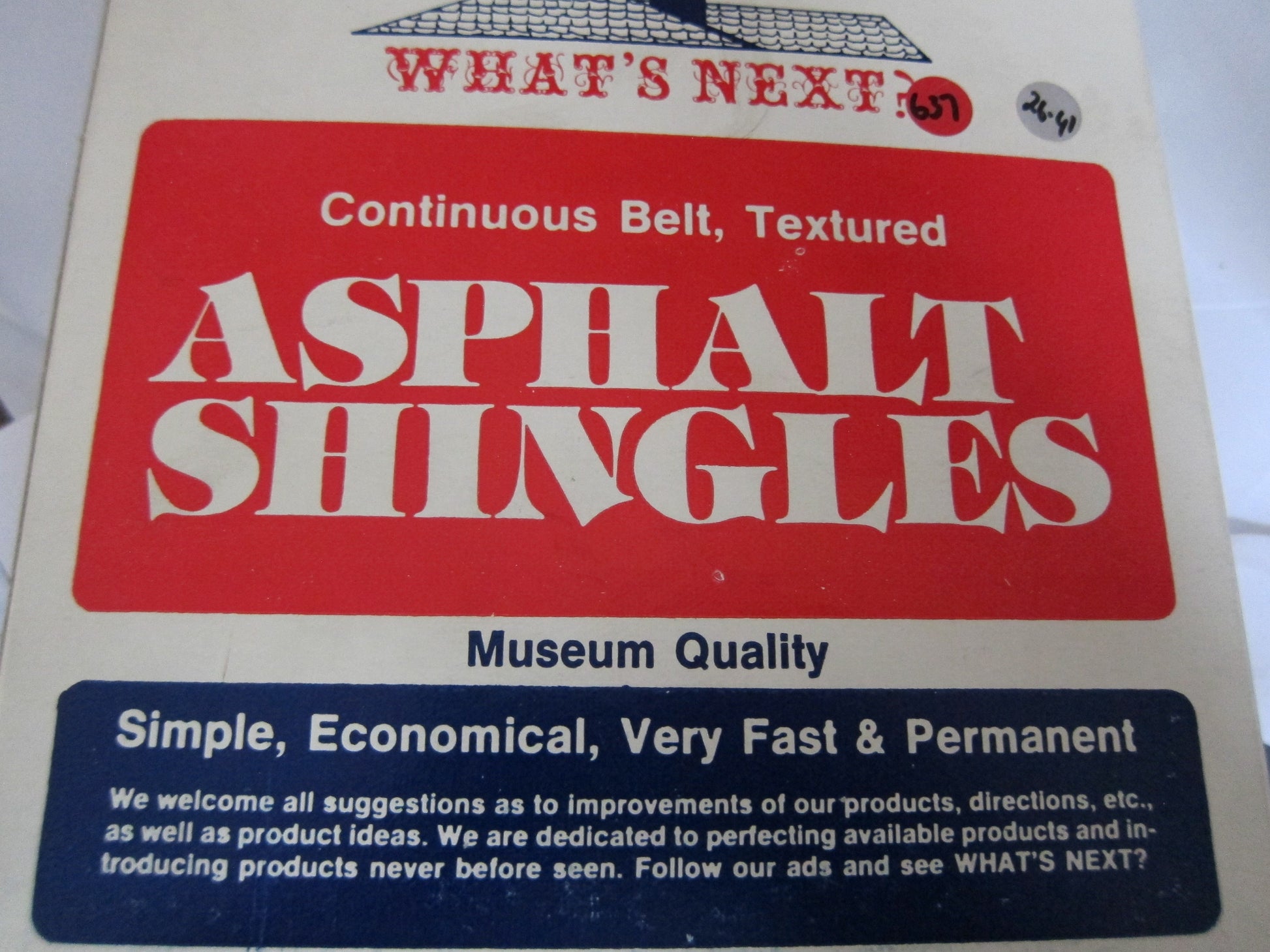 Black asphalt shingles in a continuous roll which covers one square foot or finished roof