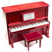 Upright Piano, with stool. 13 cm l x 6 cm d x 10 cm h. Mahogany.