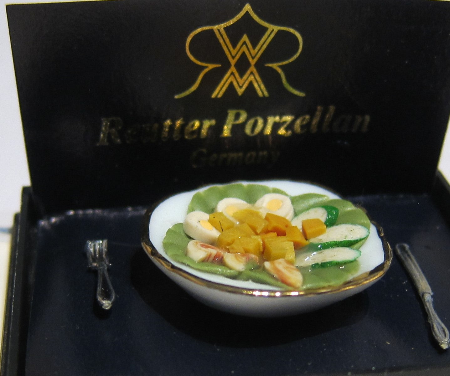 Plate Of Salad On Gold Rimmed Plate By Reutter.