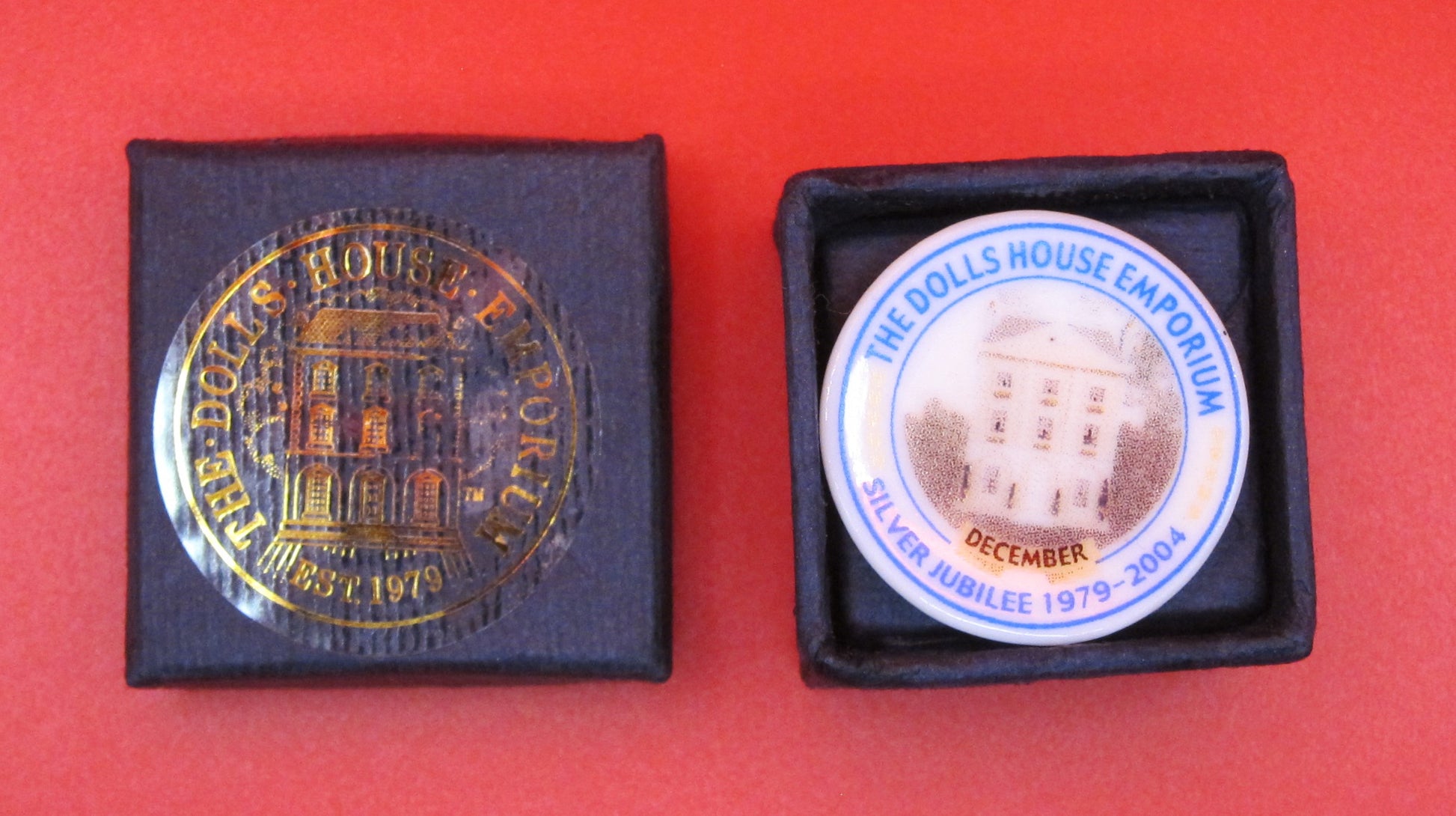 Each with it's original box. 2,5 cm diameter