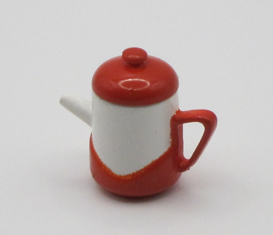 Plastic red and white teapot