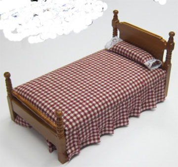 Single Bed, Walnut, 17 cm x 9,5 cm, turned tops.