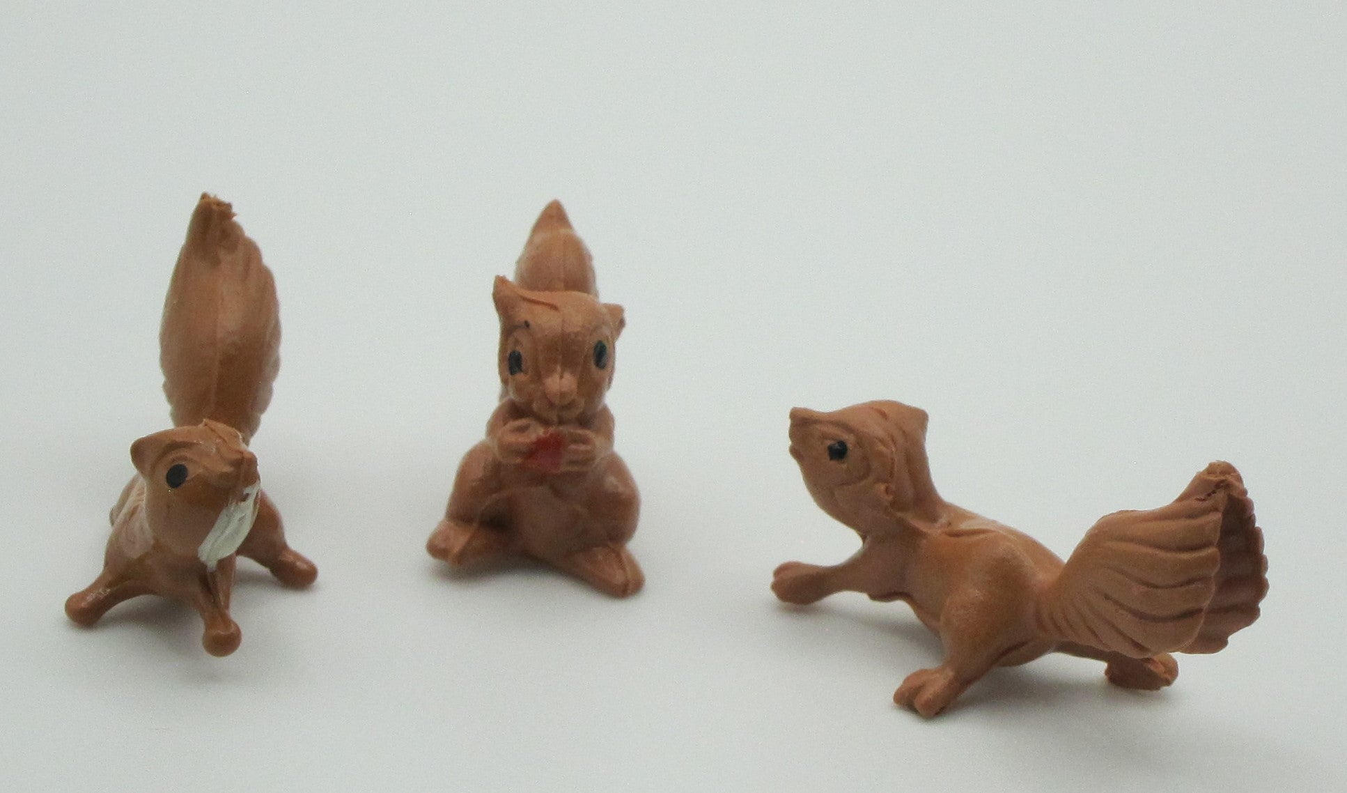 Three plastic brown squirrels