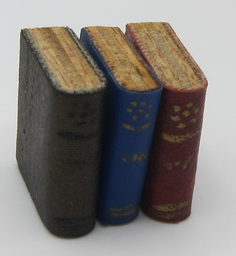 A trilogy of paperback (red, blue & brown) books. Books don't open.