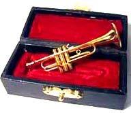 Brass trumpet in a black imitation leatherette case lined in red velvet. 6,3 cm.