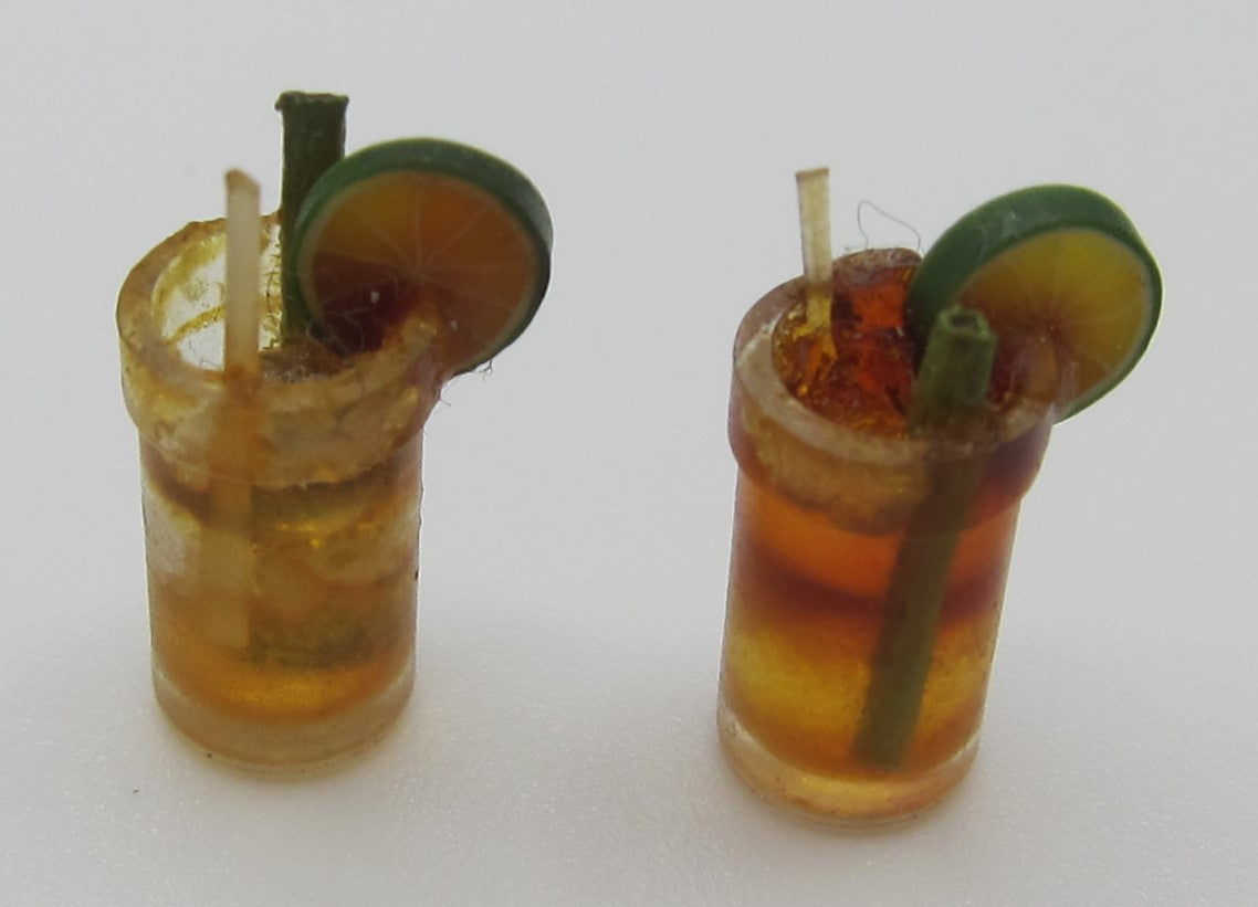 Two glasses of iced tea with a lime wedge and a straw. 1,5 cm Height