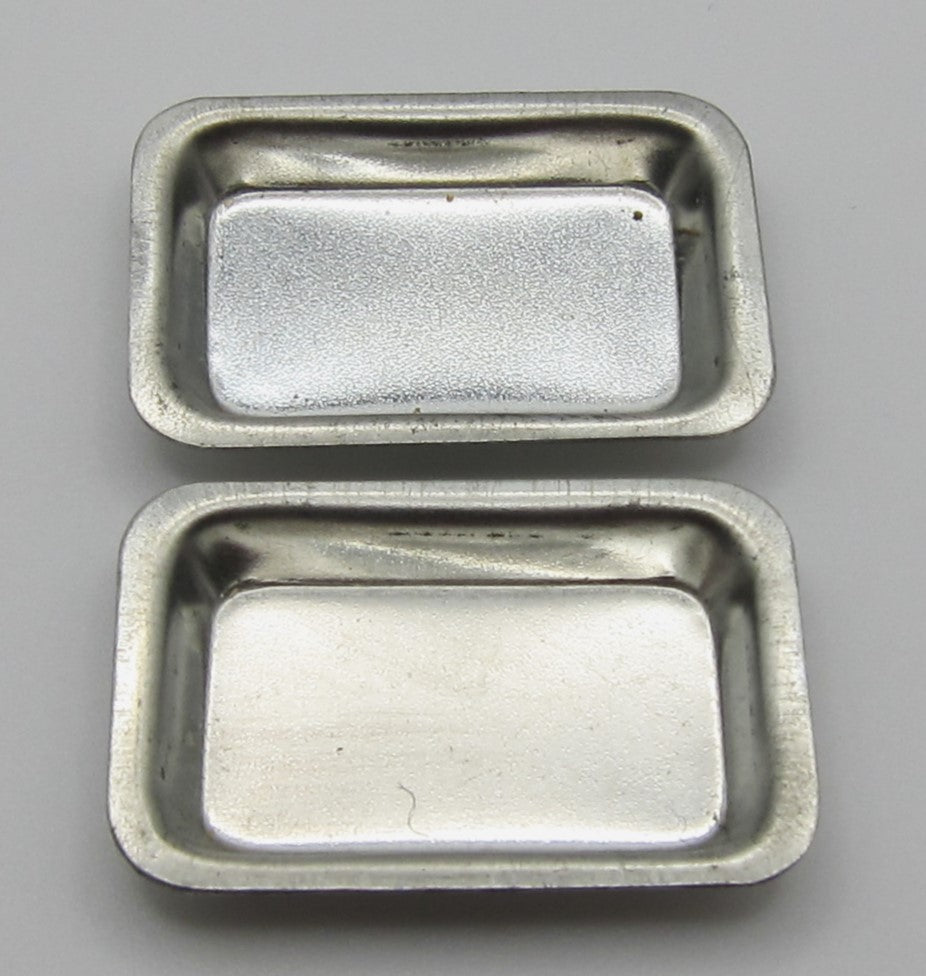 Two silver-coloured metal trays. 3 cm Length