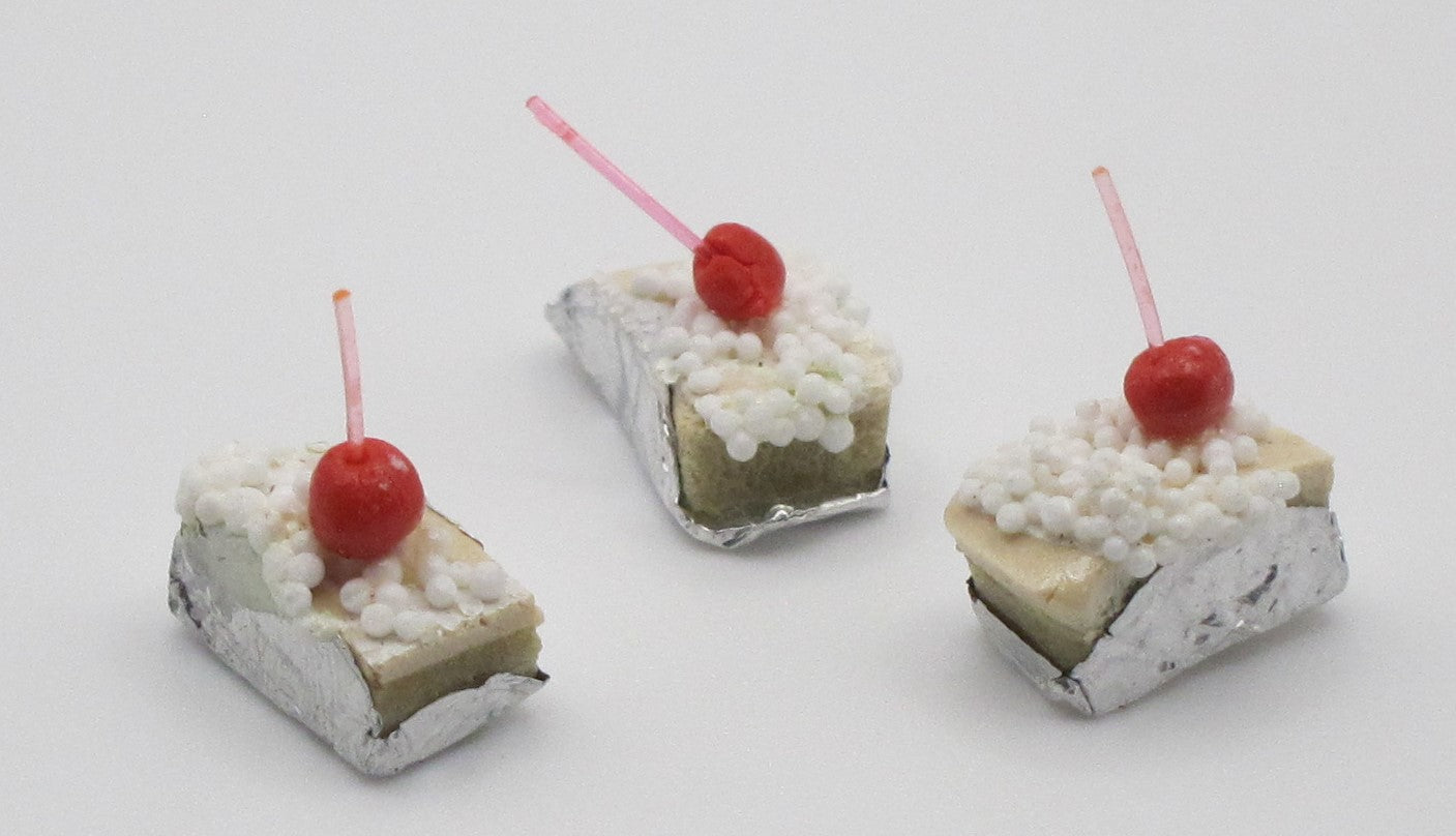 Vanilla cakes topped with red cherries