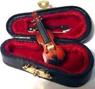 Wood & plastic violin with bow in a black imitation leatherette case lined in red velvet.