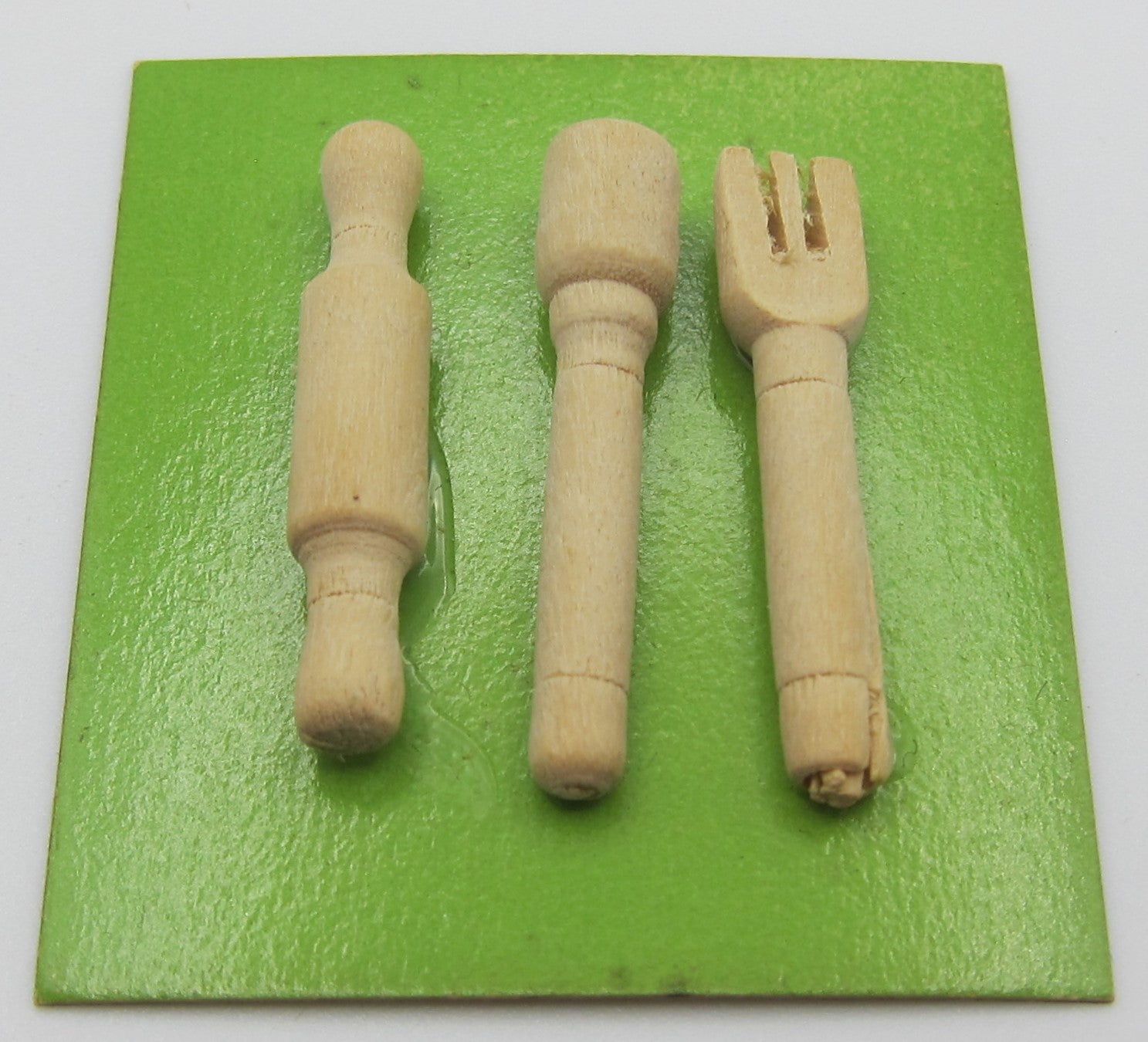 A rolling pin, fork and a masher made from wood. 3 cm Height